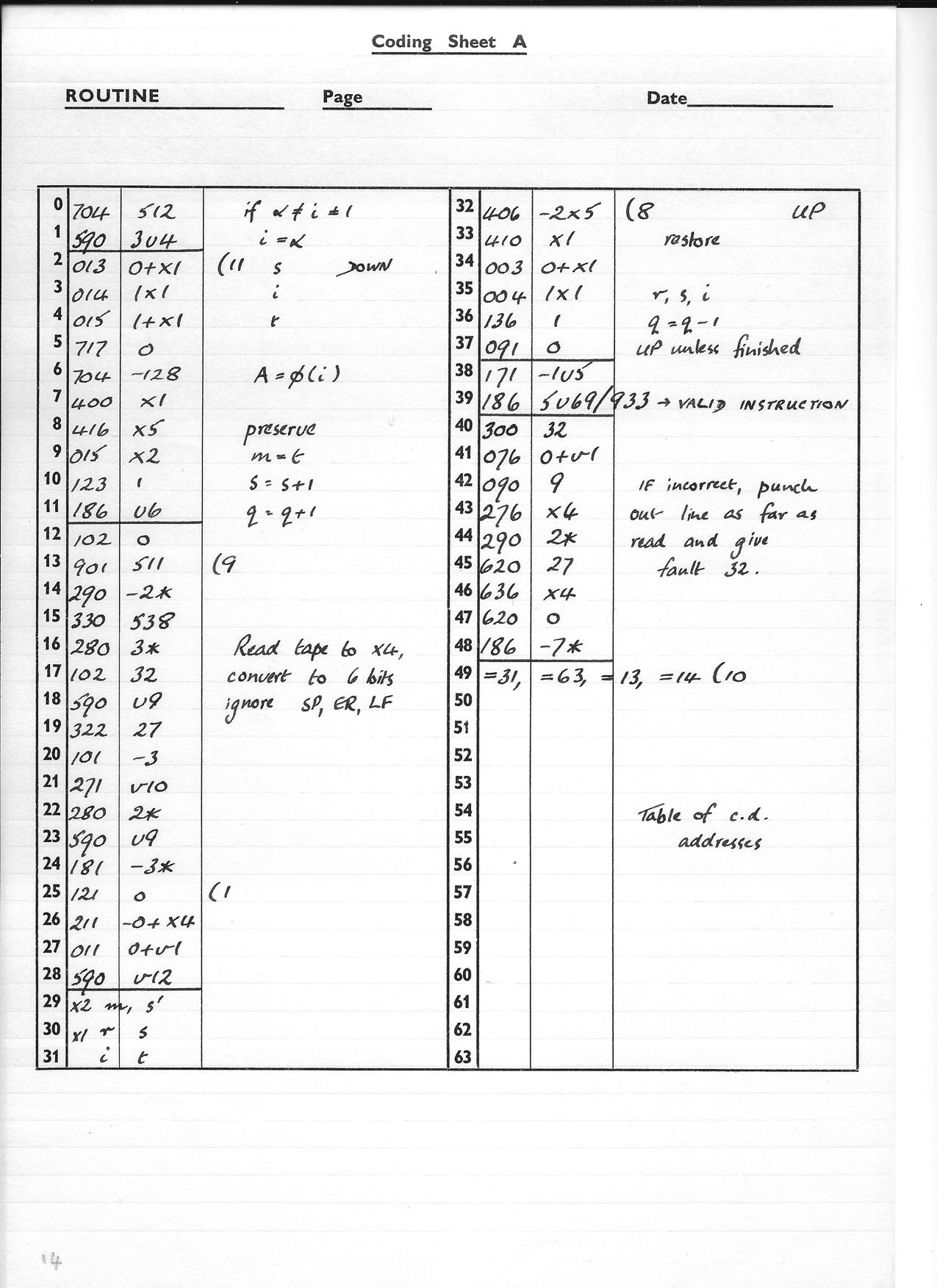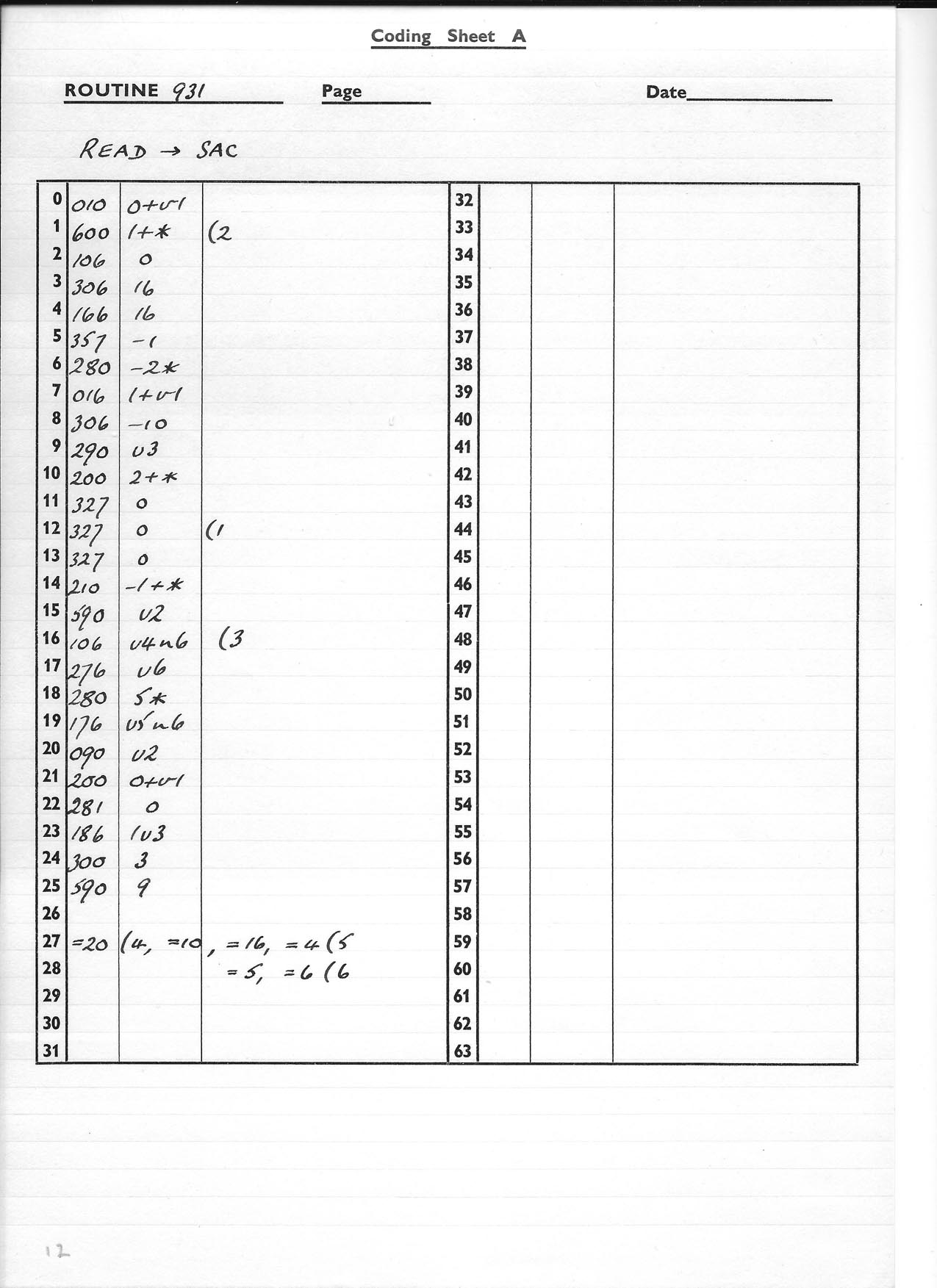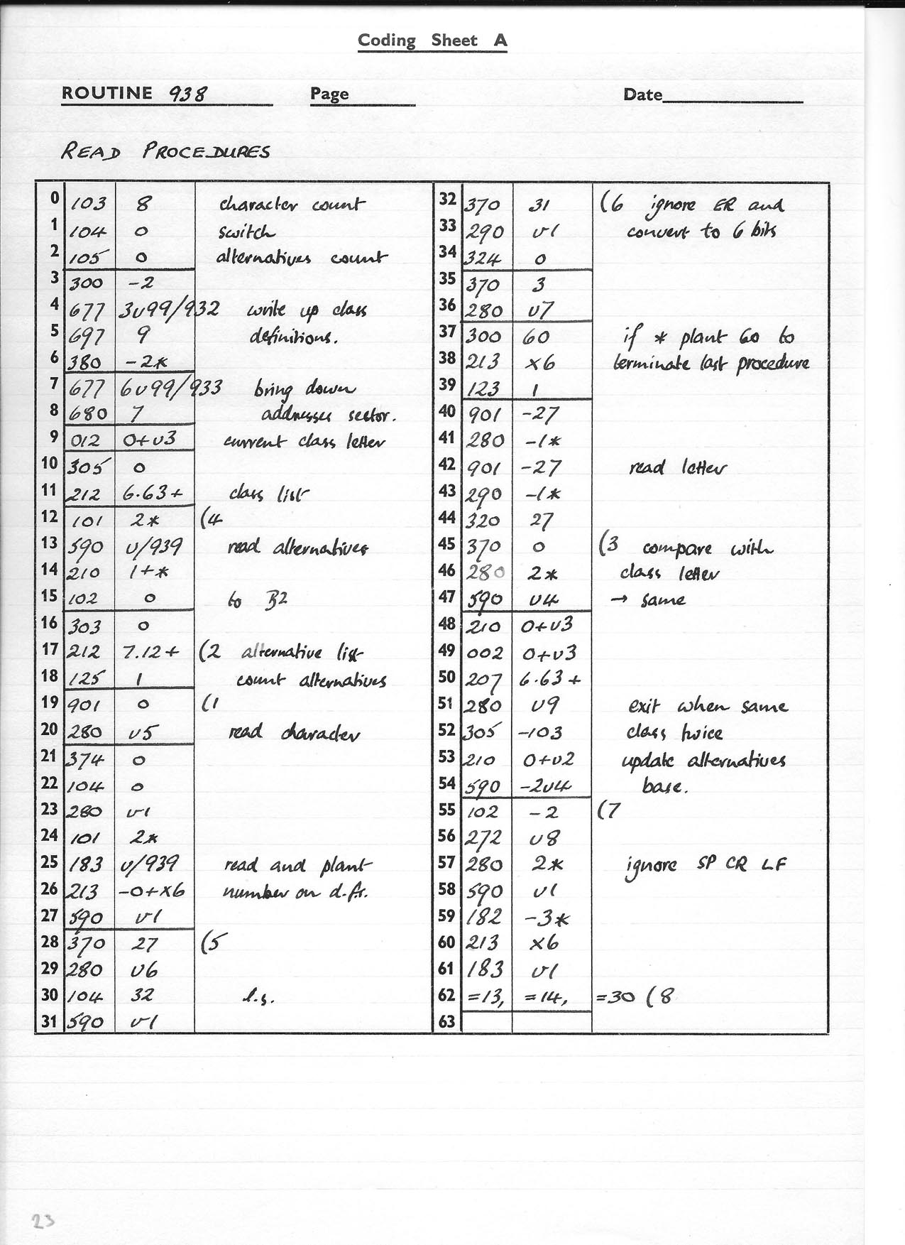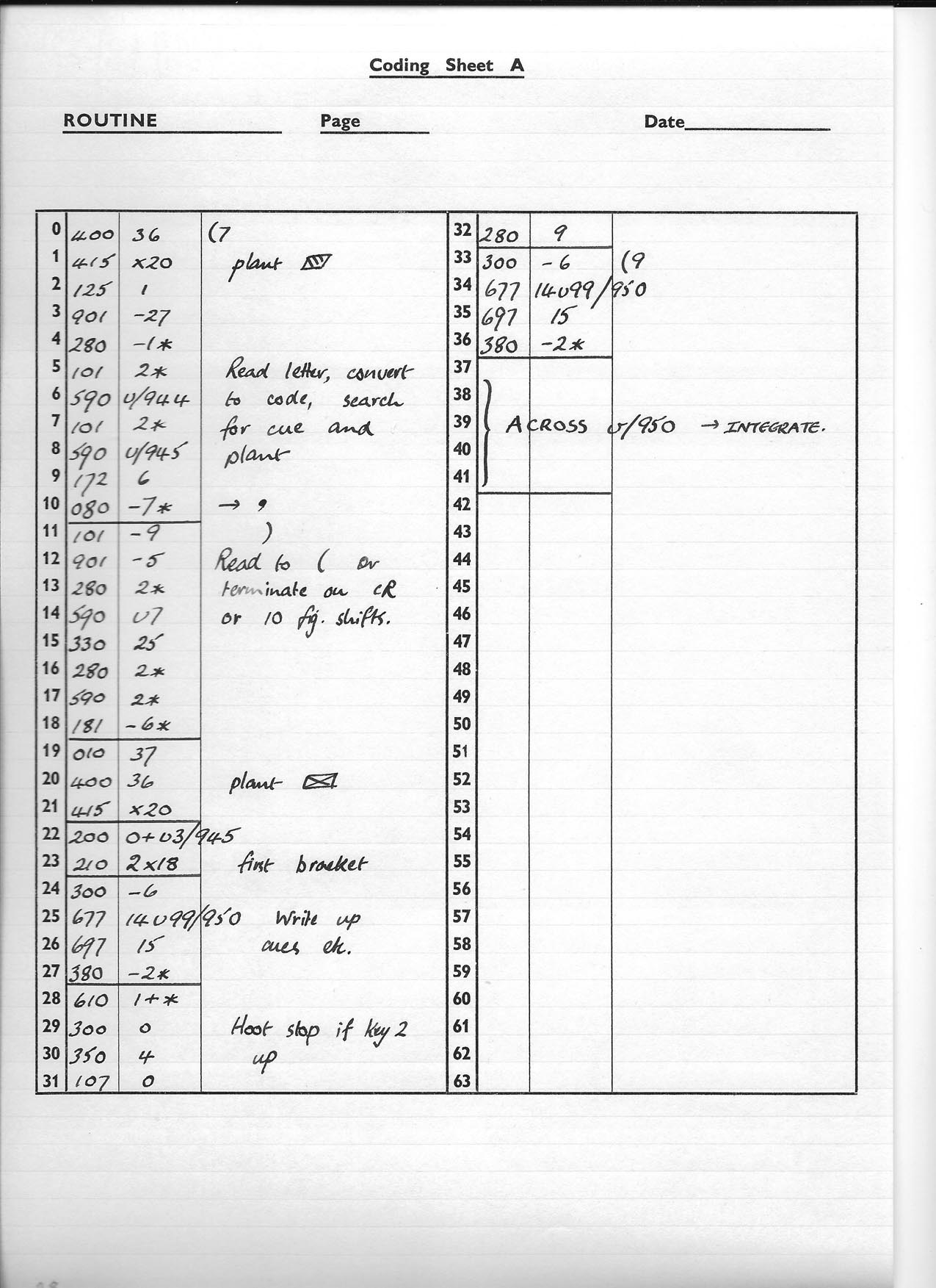 Coding sheets