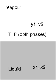 To simplify things we will generally restrict our examples to binary mixtures of two components or species. The situation is then as illustrated below.