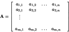 In general, if A is a `m by n' matrix, i.e. a table having m rows and n columns, it can be written in terms of its elements as: