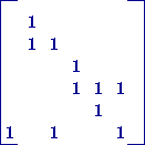 We might want to write this in `mathematical' notation we would replace the x's by ones, leaving the blanks, which are conventionally taken to imply zeros. The matrix would then look like this: