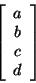 A single symbol standing for a complete list or vector is usually set in boldface type or underlined. They may be set in either slanted or straight type. We will normally use boldface straight type in these notes, e.g.:
